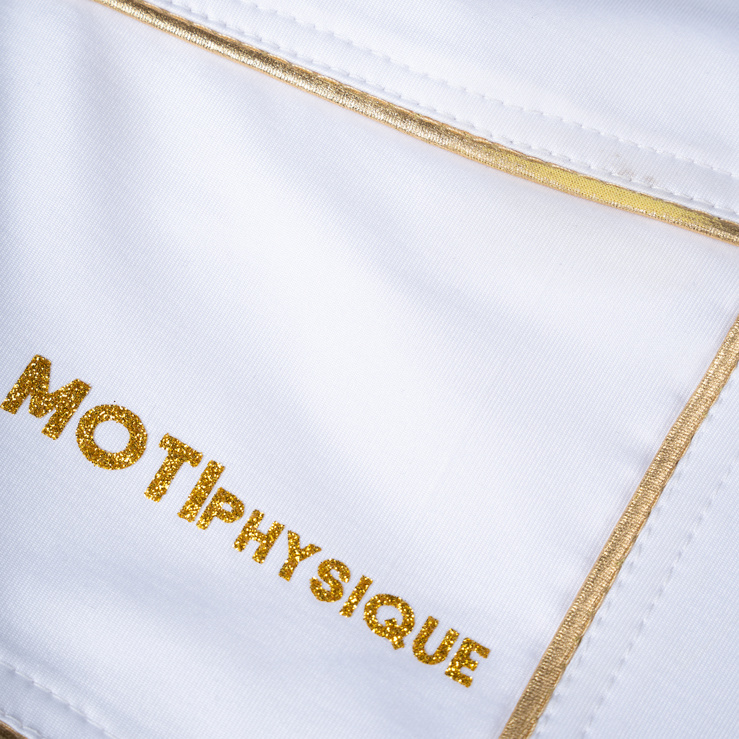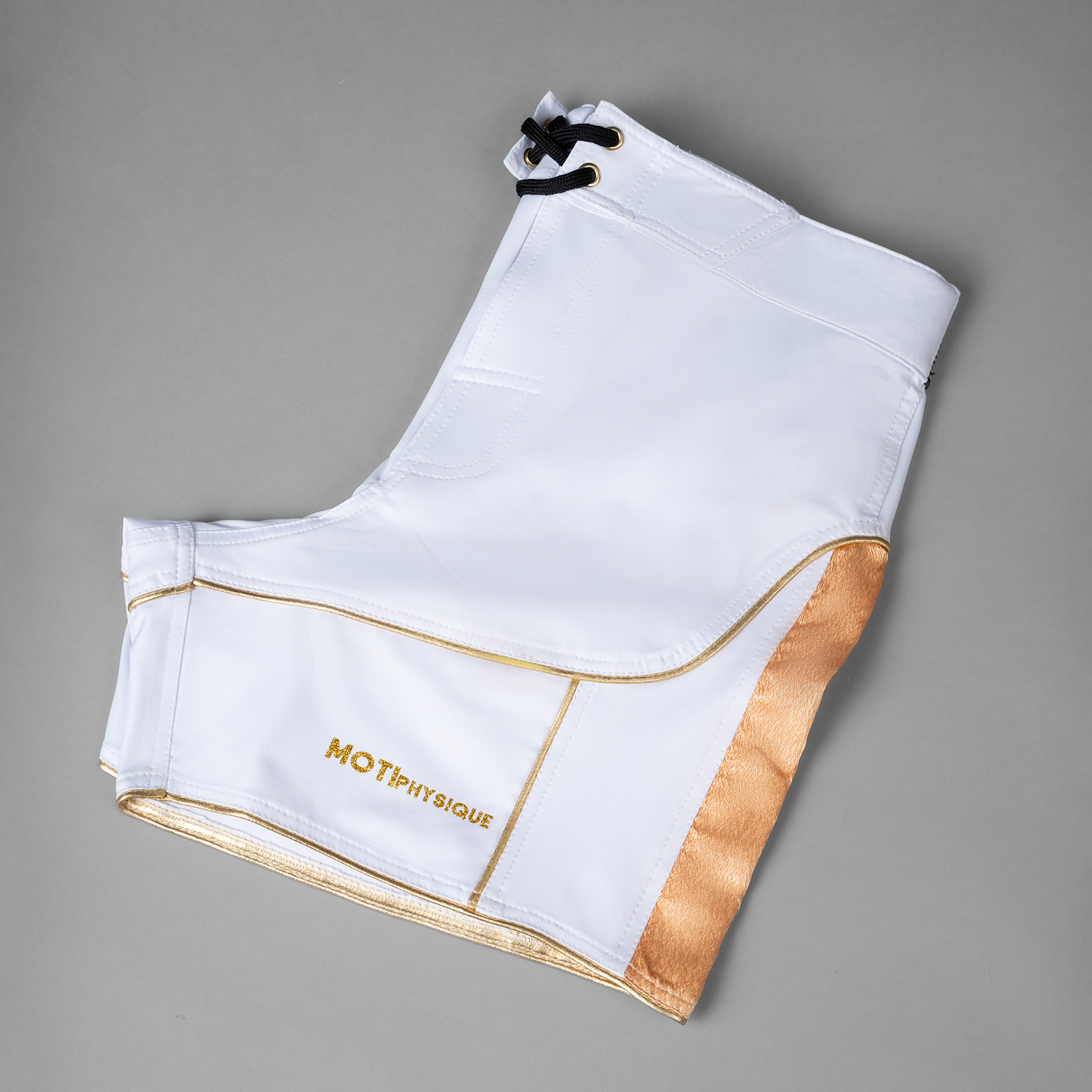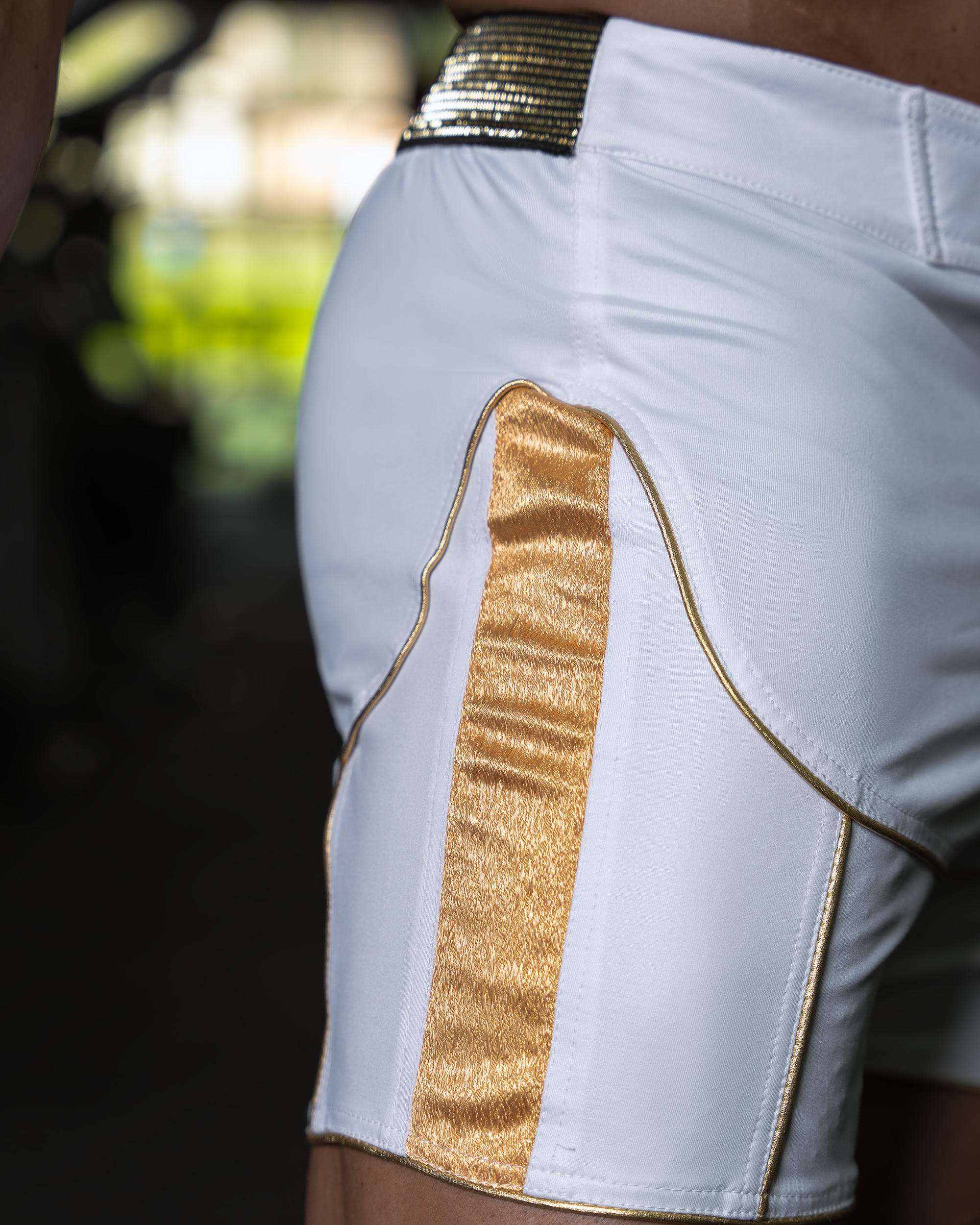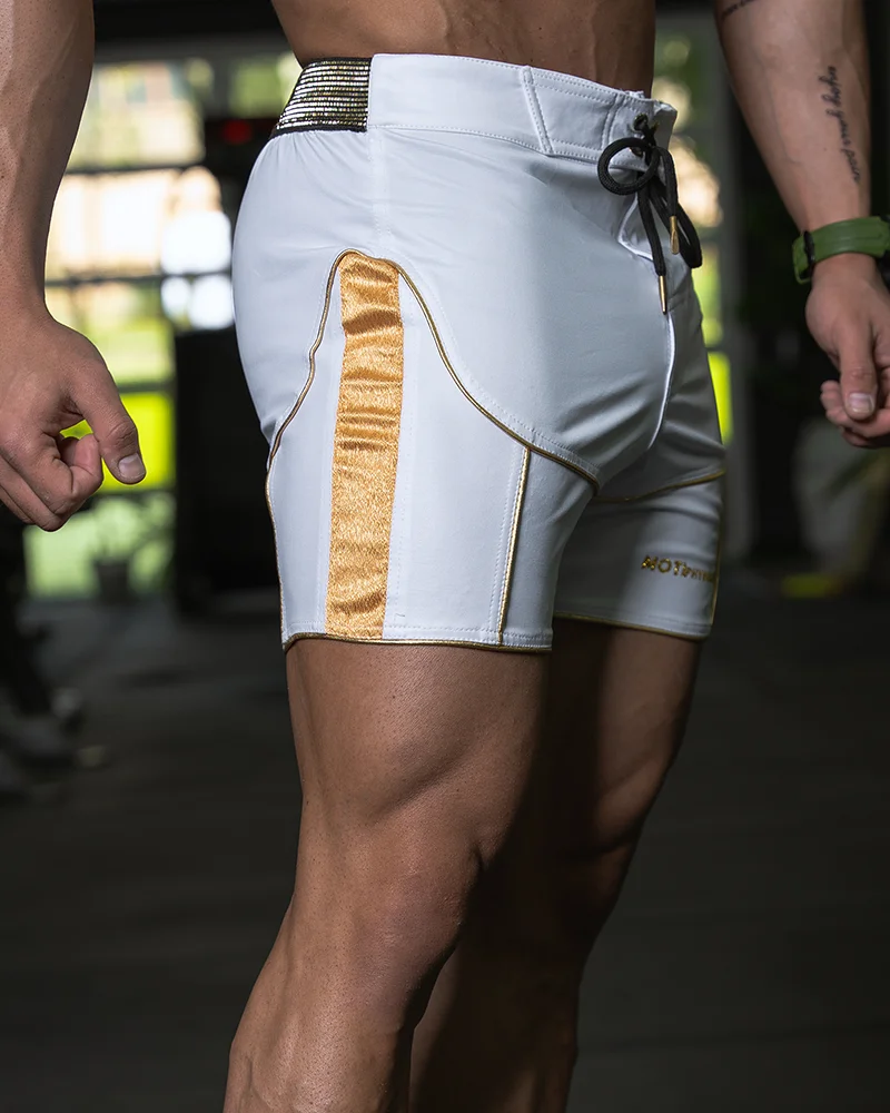 شلوارک ورزشی مردانه مدل فیزیک NPC ویژه 1 سفید طلایی