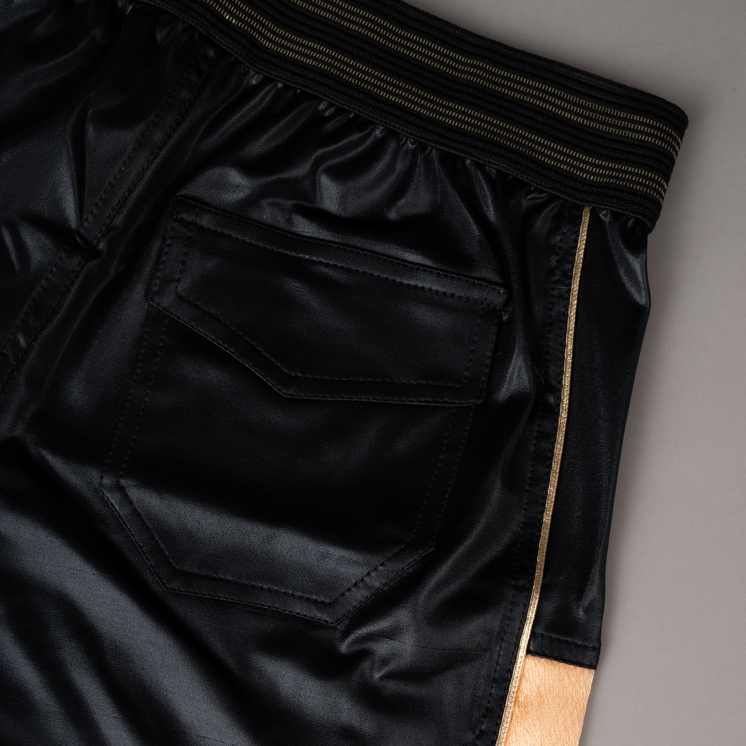 طرح چرم در قسمت پایین شلوارک، حس قدرت و استحکام را به محصول اضافه میکند و در کنار رنگ طلایی، جلوهای خاص و پرستیژدار به پاها میدهد؛ جزئیاتی که در نور تمرین یا استیج، بهوضوح خودنمایی میکند.